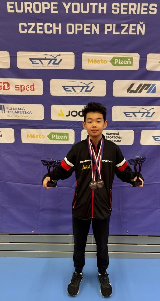 Chen Sung Bin erzielte beim Internationalen Nachwuchsturnier in Pilsen (Plzen, Tschechische Republik) wieder großartige Erfolge. Nach einem 3. Platz im Mannschaftsbewerb mit seinem Bruder Seung holte Sungi noch zweimal Bronze! Sowohl im U13- Einzel als auch im U15-Einzel musste er sich nur im Semifinale dem jeweils späteren Sieger geschlagen geben. Eine hervorragende Leistung, zu der wir sehr herzlich gratulieren!