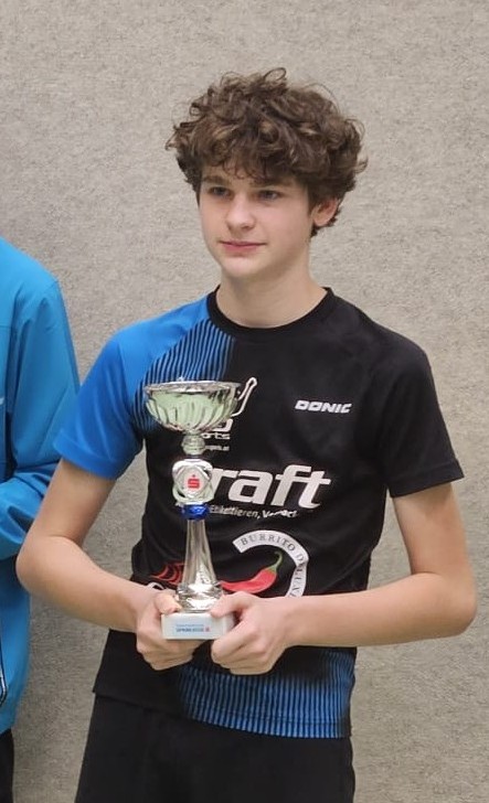 In der WTTV-„Rookie-of-the-year“-Wertung haben wir derzeit einige Spieler im absoluten Spitzenfeld! Diese Wertung zeigt an, wie sehr sich Spielerinnen und Spieler seit Saisonbeginn (01.07.2025) verbessert haben. Da sieht man auch, dass bei uns auch während des nunutommers sehr gut gearbeitet wurde. In der Kategorie U11 liegt Uros Jovanovic mit einem Punktezuwachs von 343 CR-Punkten an der Spitze, bei den U15-Spielern führt Lukas-Jakob Stoier (im Bild links) mit einem Punkteplus von 325 Punkten die Reihung an, bei den U17-Spielern stellen wir mit Yuval Legerer den Leader. Und in der Allgemeinen Klasse liegt Jonas Deubel, der bisher in der 1. Klasse eine großartige Saison spielt, an der 2. Stelle. Aber nicht nur diese Spieler haben sich zuletzt stark verbessert. Wir dürfen mit der derzeitigen Entwicklung unserer (Nachwuchs)-Spieler sehr zufrieden sein. Unser gesamtes Trainerteam leistet da wirklich eine ausgezeichnete Arbeit. Bravo – nur so weiter!!