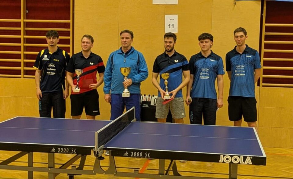 (erstes Bild von links nach rechts: Leitner Lind, Ullrich Philipp, Jovanovic Uros, Siegl Paul, Al Khawaja Adam, Stoier Lukas Jakob, Legerer Juval) Bei der Vielzahl an SpielerInnen fällt es schwer, die durchwegs guten Auftritte eines jeden zusammenzufassen, jedoch sollen die Highlights des Wochenendes hier noch einen Platz finden: In der Gruppe 2 holte sich Paul Dobretsberger bravourös den Gruppensieg – und das ohne eine einzige Niederlage! In einer spannenden Gruppe 13, bei der lange Zeit alles offen war, konnte sich schlussendlich der Verteidigungskünstler Paul Siegl durchsetzen und gewann die Gruppe mit einem Spielverhältnis von 7:2. Nicht weniger nervenaufreibend ging es in der Gruppe 15 zu. Ebenfalls mit einem Spielverhältnis von 7:2 konnte sich Leitner Lind an die Spitze der Gruppe setzen. So schlug er seinen Kontrahenten Pucher Lukas, der wie Lind auch ein Spielverhältnis von 7:2 hatte, klar mit 3:0. Das gleiche Kunststück wie unserem Paul D. gelang auch Adam Al Khawaja in der Gruppe 19 – er gewann seine Gruppe ohne Niederlage und durfte sich somit ganz oben auf das Podest stellen. Besonders hervorheben möchten wir auch die Leistung von Juval Legerer. Mit seinem überlegten Angriffsspiel und viel Kampfesmut sicherte er sich in der Gruppe 12 den dritten Platz und durfte mit Pokal in der Tasche die Heimreise antreten.
