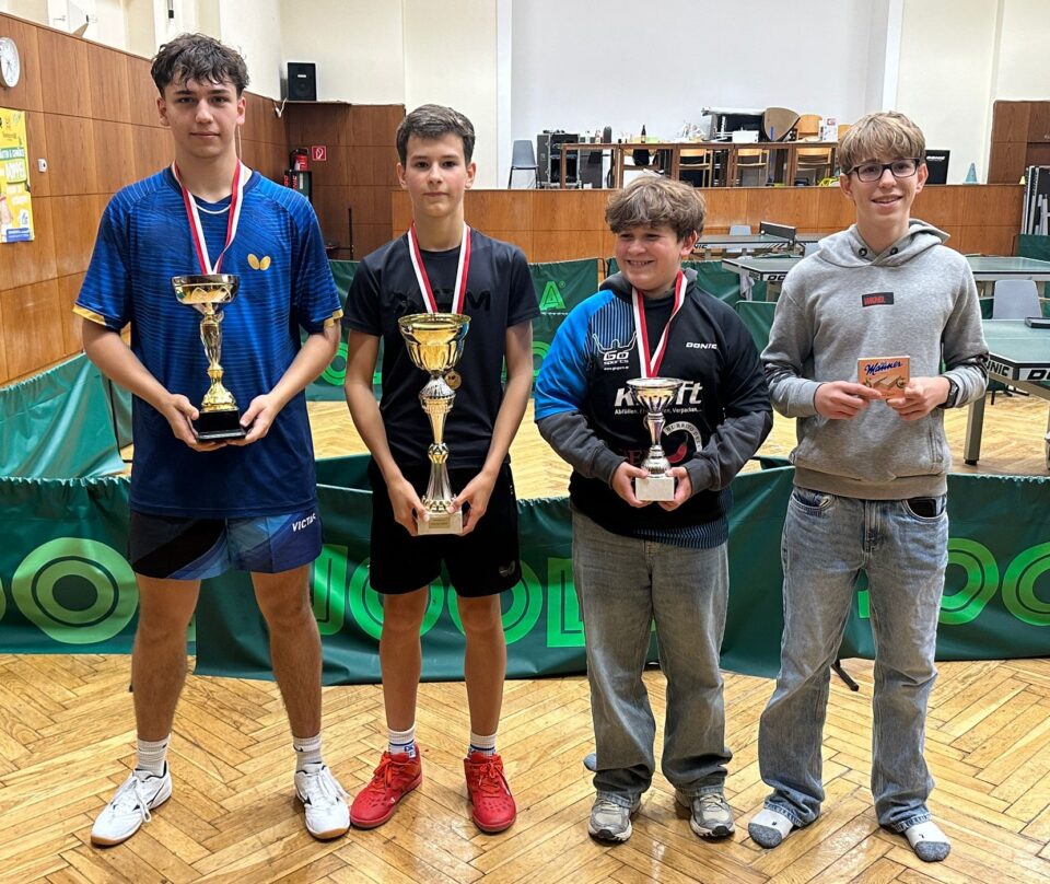 Beim 1. WIN-Turnier der Saison 2025/26, das in Kapfenberg und Bruck an der Mur ausgetragen wurde, stellte unser Verein zahlreiche Rekorde auf. Noch nie hat ein Verein für ein WIN-Turnier 31 Nennungen abgegeben, leider fielen dann drei Aktive aus, aber auch 28 Teilnehmer ist ein eindrucksvoller Rekord. Dazu kamen elf Betreuer beziehungsweise Begleiter – sensationell. Dass das keinen geringen Arbeitsaufwand bedeutete, kann man sich vorstellen. Sensationell und höchst erfreulich sind aber die Ergebnisse unserer Spielerinnen und Spieler: Wir stellen nicht weniger als sechs Gruppensieger!! – Chen Sung Bin (Gruppe 2), Kyrylo Nakonechny (Gruppe 4), Elias König-Hollerwöger (Gruppe 8), Nicolas Piroue (Gruppe 11), Uros Jovanovic (Gruppe 19) und Patrick Dragusin (Gruppe 20). Dazu kommen noch 2. Plätze von Lukas Jakob Stoier (Gruppe 14) und Yuval Legerer (Gruppe 15) sowie 3. Plätze von Bela Csomor (Gruppe 3), Paul Siegl (Gruppe 14) und Can Ugurhan (Gruppe 20) – wir durften also nicht weniger als 11 Pokale aus der Steiermark mit nach Wien bringen. Ein weiterer großartiger Beweis der hervorragenden Arbeit unseres Trainerteams – Richard Kovacs, Franz Klaus, Chris Kautsky, Laurin Groier, Jonas Deubel, Jörgen Deubel, Lukas Gruber: vielen Dank für eure Arbeit uns euren Einsatz. Mindestens ebenso erfreulich wie die Ergebnisse war auch der Zusammenhalt in unserer großen Gruppe, das hat richtig Spaß gemacht. – Abschließend wollen wir uns für die späte Veröffentlichung dieses Berichtes entschuldigen, wir hatten und haben kleine technische Probleme mit unserer Homepage…